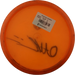 Käytetystä kiekosta löydät kuntoluokituksen lisäksi kolme tuotekuvaa (kansi, pohja ja siipi), painon (g) sekä tiedot tussimerkinnöistä.