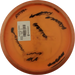 Käytetystä kiekosta löydät kuntoluokituksen lisäksi kolme tuotekuvaa (kansi, pohja ja siipi), painon (g) sekä tiedot tussimerkinnöistä.