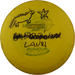 Käytetystä kiekosta löydät kuntoluokituksen lisäksi kolme tuotekuvaa (kansi, pohja ja siipi), painon (g) sekä tiedot tussimerkinnöistä.